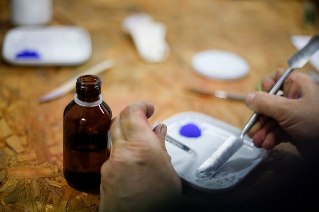 Il laboratorio dei pastelli nasce anche da un’altra esigenza: il desiderio che i colori usati durante La Notte dei Continenti – una pratica storica de Il Pesce d’Oro che unisce segno, musica e colore – fossero finalmente creati da noi. Dopo anni di esercizio percettivo, poetico e corporeo, è nata l’urgenza di dare una materia a quei gesti. Così abbiamo studiato le tecniche di fabbricazione del colore e – insieme alla nostra chimica Sara Barresi – abbiamo dato vita alla nostra prima tiratura limitata.