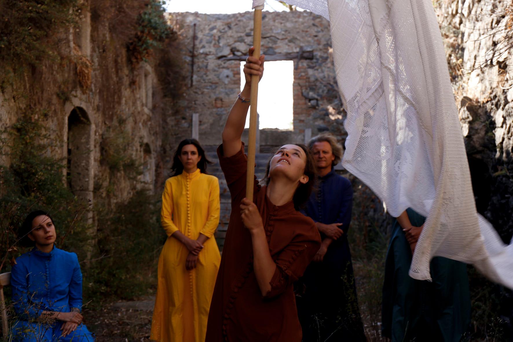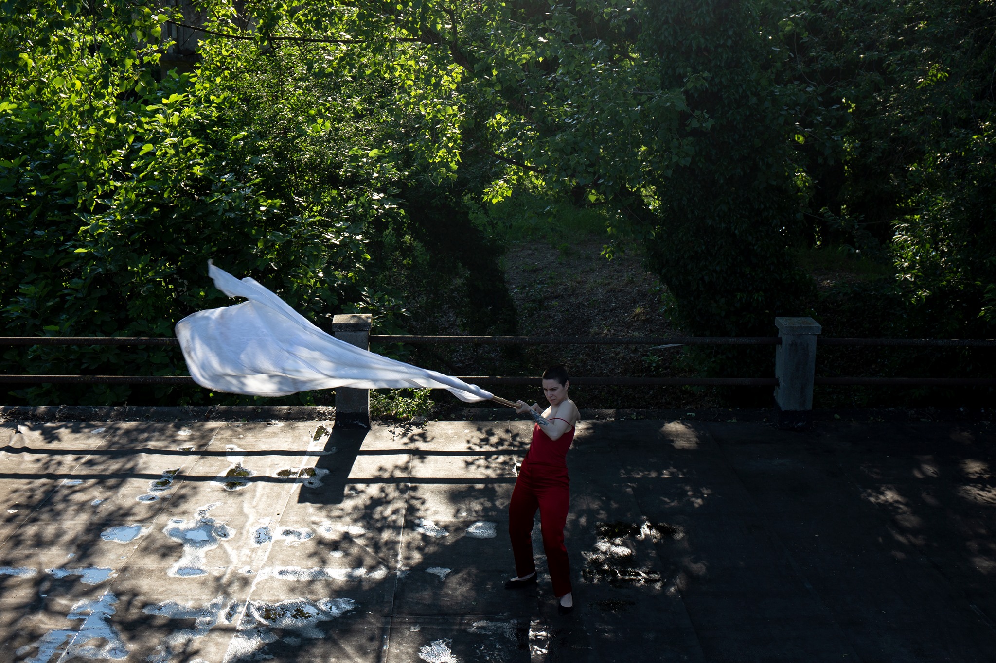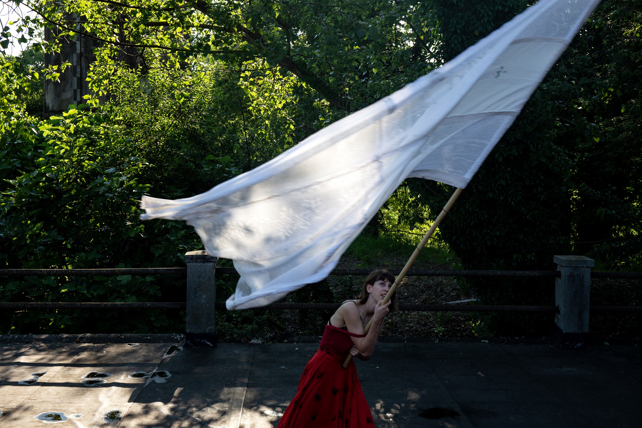 Abitare la bandiera, finché il corpo ne può sostenere l’ampiezza diviene uno strumento incredibile di ricerca e di affondo fra una zona liminale all’intimità ed una prossima all’universale.